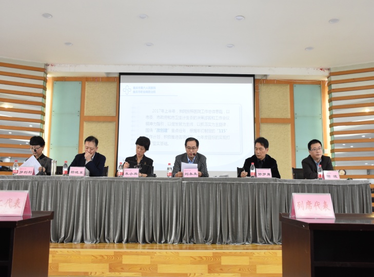 2017年10月20日下午2点,大会在庄严的《国歌》声中开幕。大会听取了院长刘永生所作的《找准定位抓机遇 坚定信心谋发展》半年工作总结报告、财务科长骆骁所作的《2017年医院半年财务决算报告》、经审委员会宋关伦所作的《2016年工会经费审查及2017年上半年工会经费收支情况报告》,审计科曾敏所作的《2017年前三季度医院审计工作报告》。两个科室的代表上台进行了工作交流发言