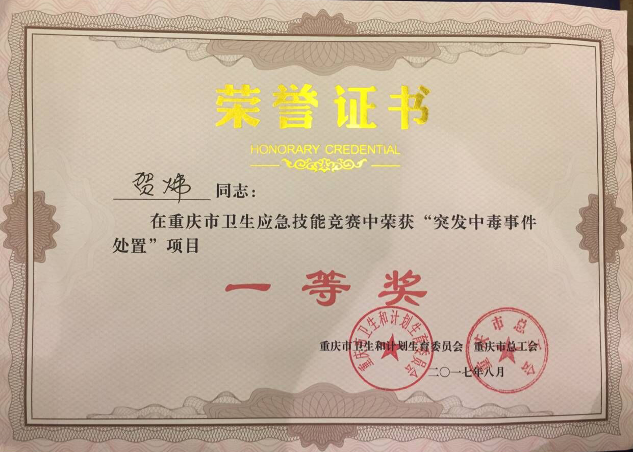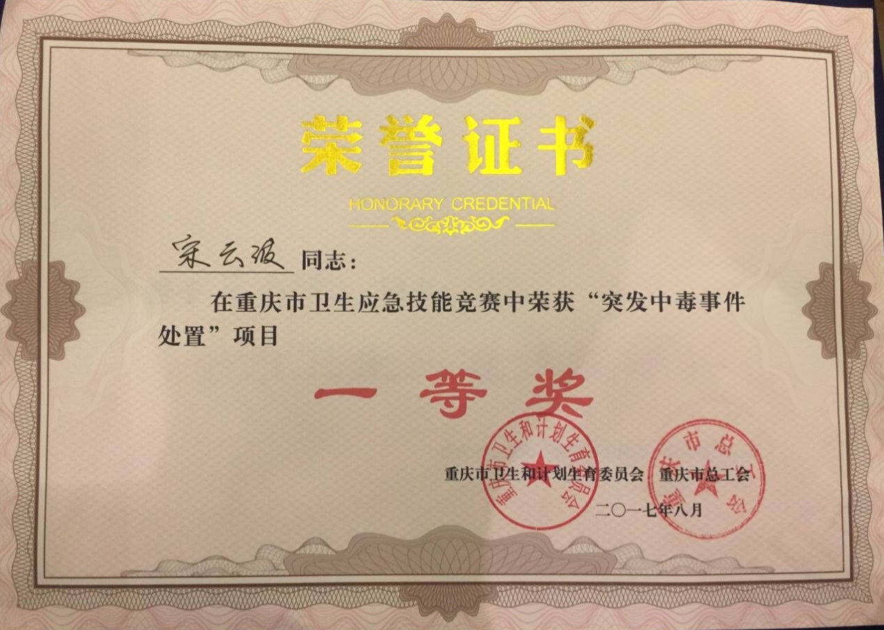 经过理论考试、桌面推演、技能操作及知识竞答等多个环节的激烈角逐,最终,我院参赛队伍以突发中毒事件处置项目第1名的成绩荣获一等奖。同时,我院叶绿素、贺炜、宋云波三名参赛队员荣获突发中毒事件处置项目个人一等奖及全市卫生应急技能标兵称号。