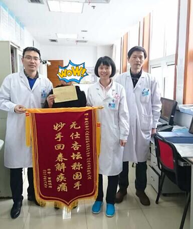 2017年3月5日上午,患者曹某家属将一面印有“无仕杏坛称国手,妙手回春解疾苦”的锦旗和一封感谢信送到我院职业病科王永义主任和主管医生陈欣、叶绿素手中,感谢职业病科医护人员在患者住院期间给予的精心治疗和热情周到的服务,特别是表达了对主任王永义和两名主管医生医德高尚、医术精湛的感激之情。