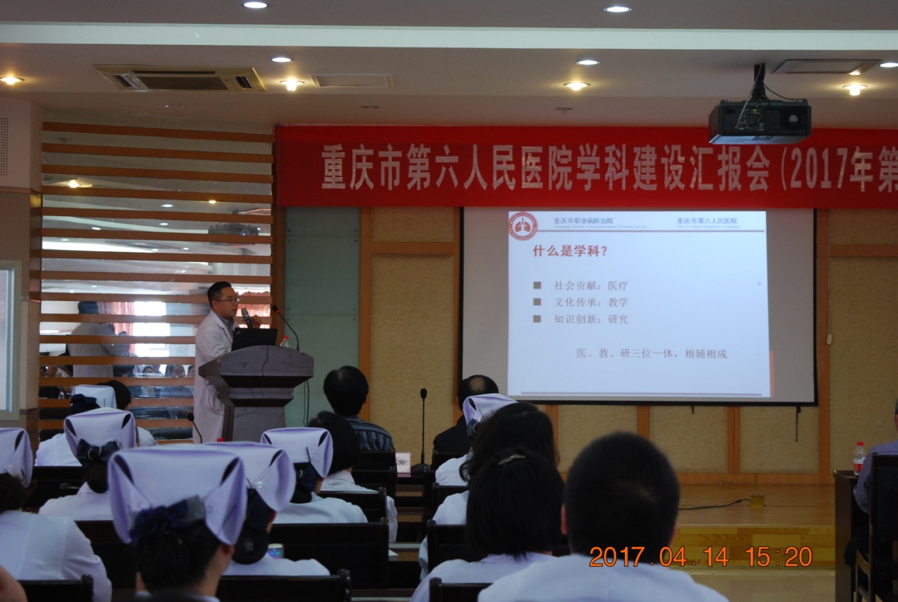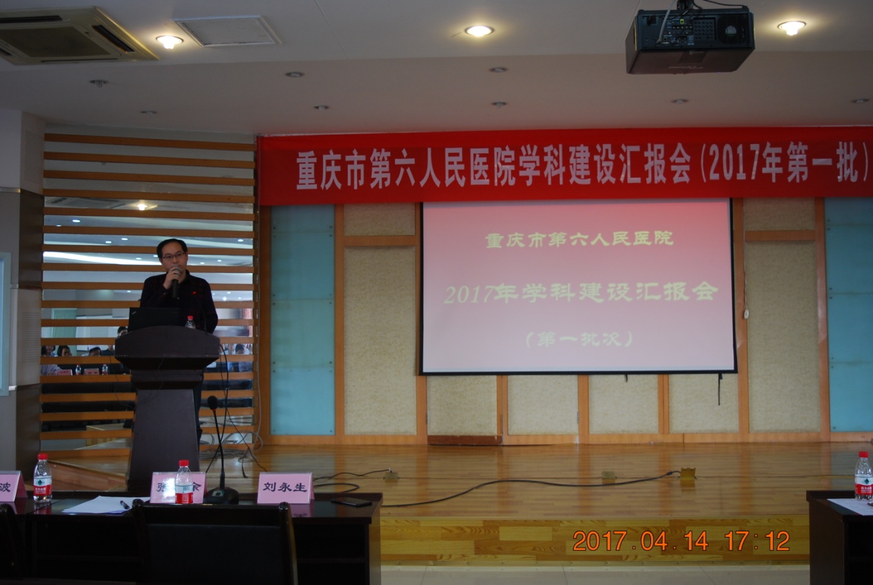 医院的学科建设是医院建设的重要组成部分,是提高医疗技术水平、提高医院综合竞争力的重要途径。在院领导的高度重视下,经医务部积极筹备,我院学科建设汇报会于2017年4月14日下午在综合楼多功能厅正式拉开帷幕。会议由赖晓东副院长主持。刘永生院长、张建余书记、赖晓东副院长、特邀专家西南医院内分泌科陈兵教授、重庆医科大学附属第二医院呼吸科李长毅教授,院内专家组成员、各职能部门负责人、临床医技科室主任及医护人员参加了会议。