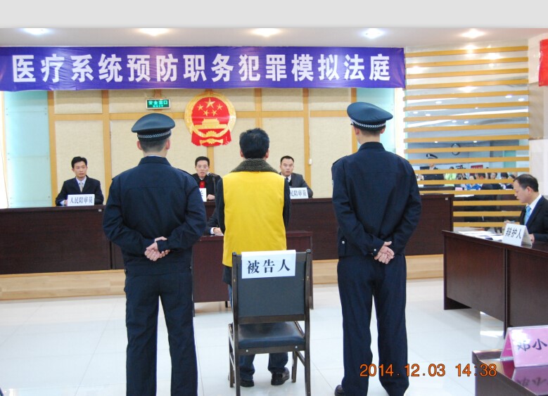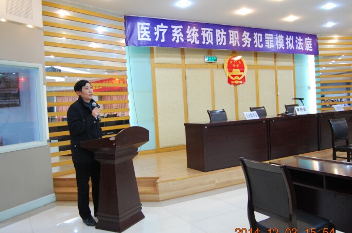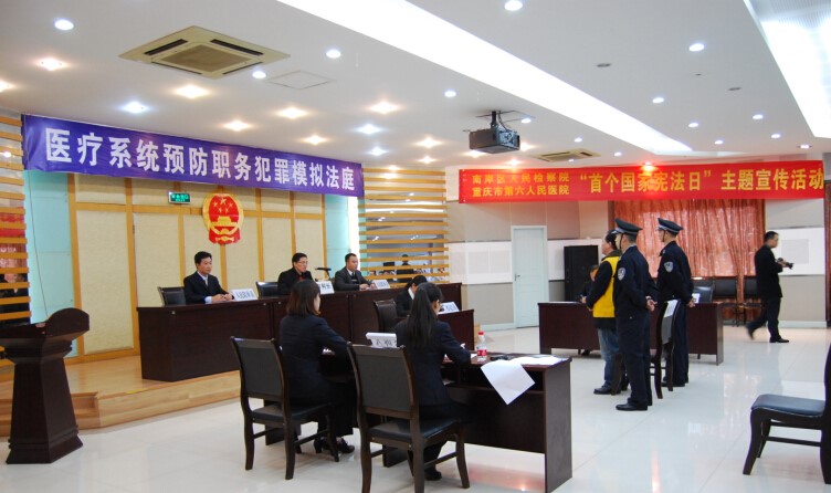 为了更好的贯彻执行党的十八大、十八届四中全会上提出的“深入推进党风廉政建设和反腐败斗争,加强行业作风建设”的要求,根据市卫计委相关工作部署,结合我院纪检监察工作要点,深入拓展“检卫共建”活动,于12月3日特邀请重庆市南岸区人民检察院、法院,在我院联合举办“医疗系统预防职务犯罪模拟法庭”演绎活动,也是我们共同举办的“首个国家宪法日”主题宣传活动之一,这场模拟法庭体验式教育活动,由司法机关的专家和我院临床科主任、医生、职能管理部门同志扮演角色,还原真实案例,完全按照庭审程序,再现了庭审的全过程,控辩双方就案件的争议焦点进行了举证、质证等环节,并进行激烈的法庭辩论。