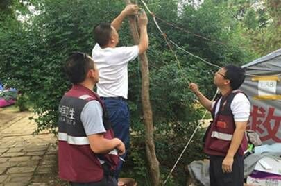 当地时间下午2:30左右,一台送水车将医疗队“帐篷医院”门急诊区的电力输送线路挂断。当时情况十分危急,队员们快速反应,立即划出危险区域,疏散群众。此时又发生了6.2级余震,但队员们仍然坚守在抢险第一线,仅仅用15分钟便排除了险情,保障了医护人员、病人和群众的生命安全。