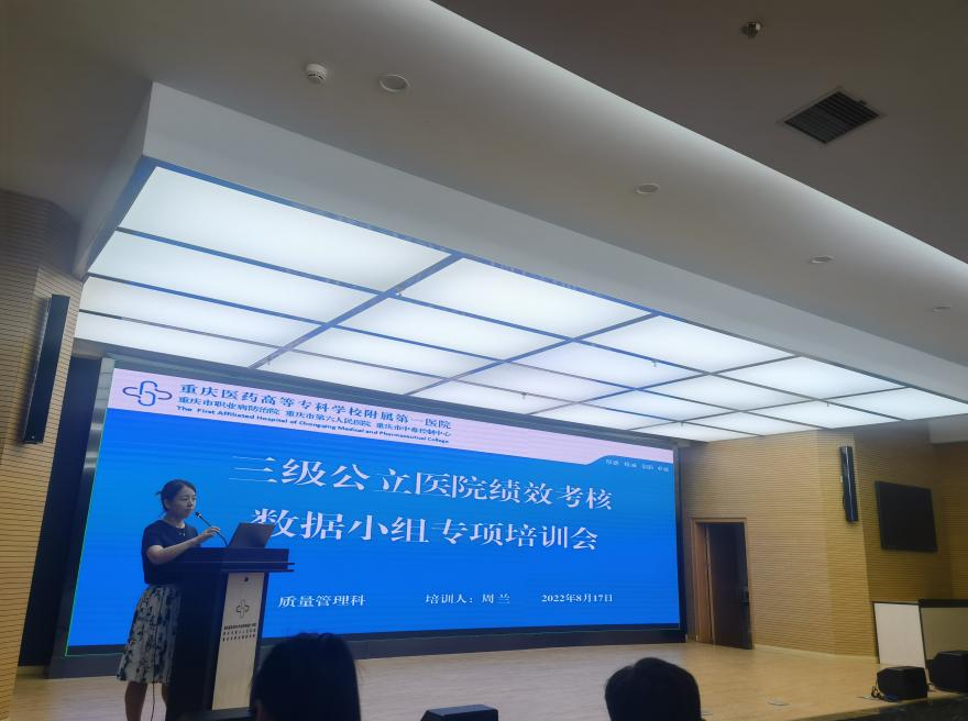 为进一步做实做细三级公立医院绩效考核数据填报、统计、分析、反馈、运用等数据全生命周期管理工作,打造一支高素质、高水准三级公立医院绩效考核数据管理人员队伍,质管科于2022年8月17日上午在重庆医药高专附一院1号会议室组织进行了2022年三级公立医院绩效考核数据小组专项培训活动。培训会由质管科副科长周兰主持,全院职能科室及部分临床科室负责人及从事数据工作的科室骨干共计80余人参会。