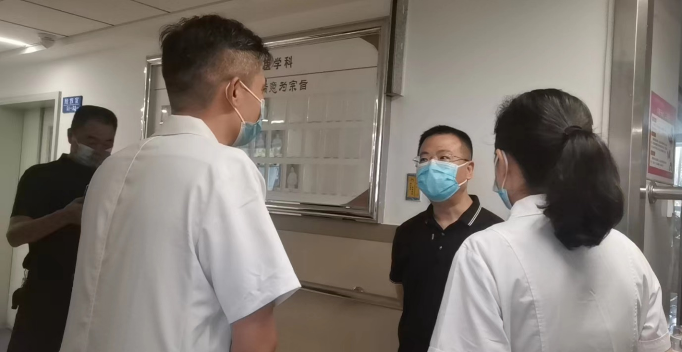 9月9日下午14:15分,由院党委书记邬亮,院长刘永生,院领导班子带领院感科、护理部、质管科等相关职能科室分组对花园路分院、综合楼(含食堂和车班)、高压氧室、消防控制室、新门诊大楼、预检分诊、住院部、体检中心、发热门诊、医技楼、家属区进行全方位检查。