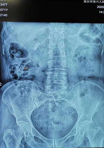 术后腹部平片患者膀胱内无结石残留。院方供图