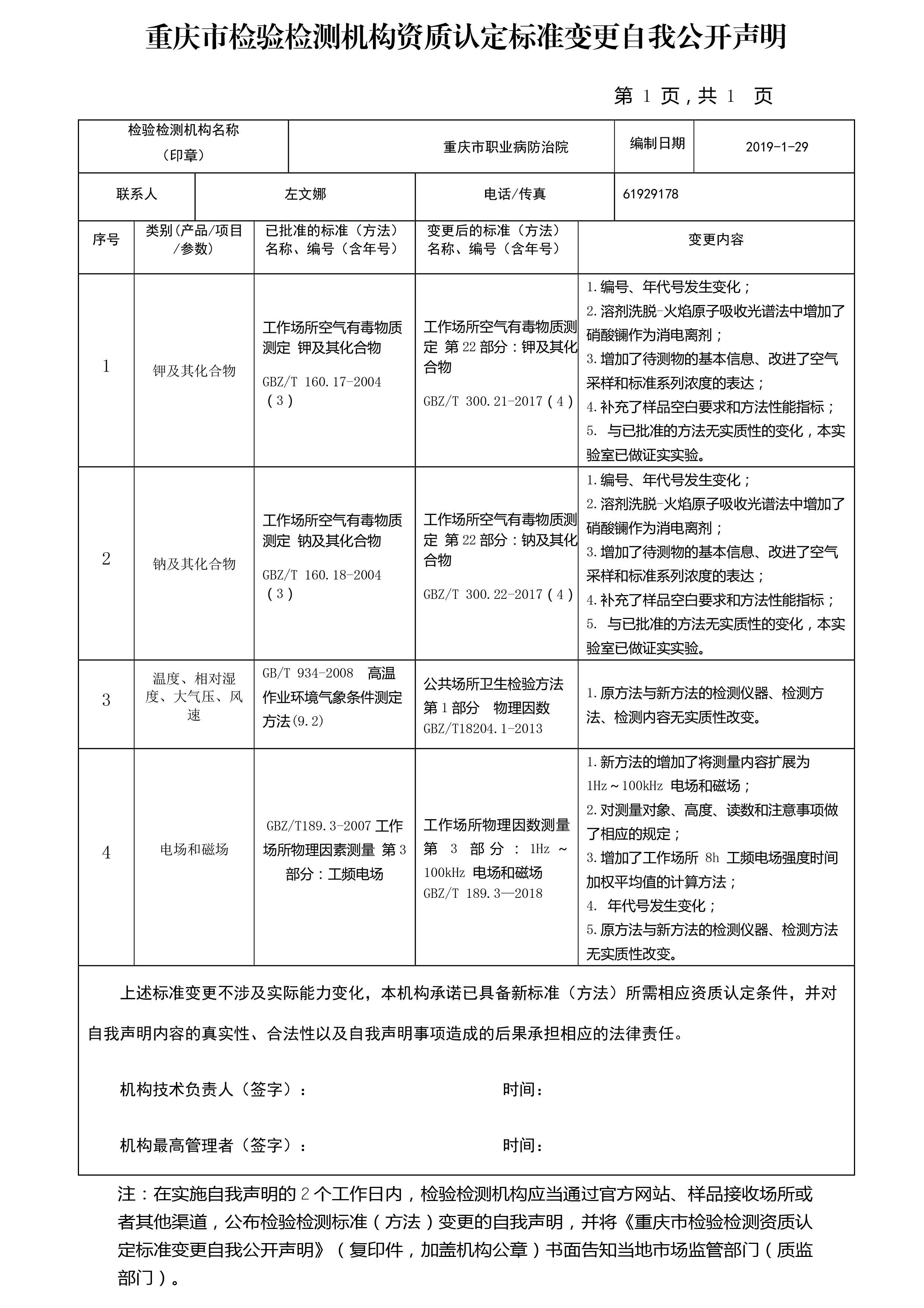 重庆市检验检测机构资质认定标准变更自我公开声明