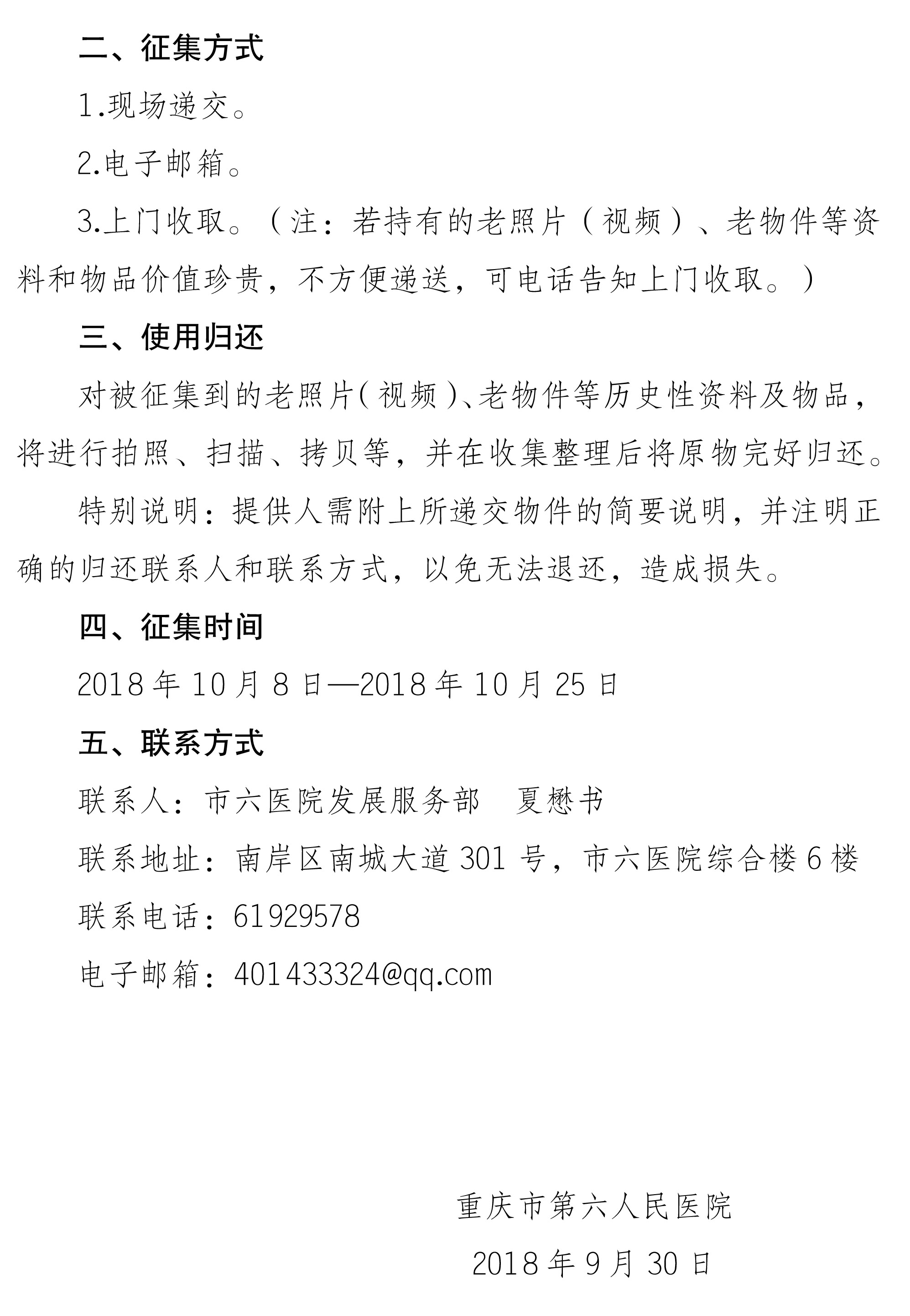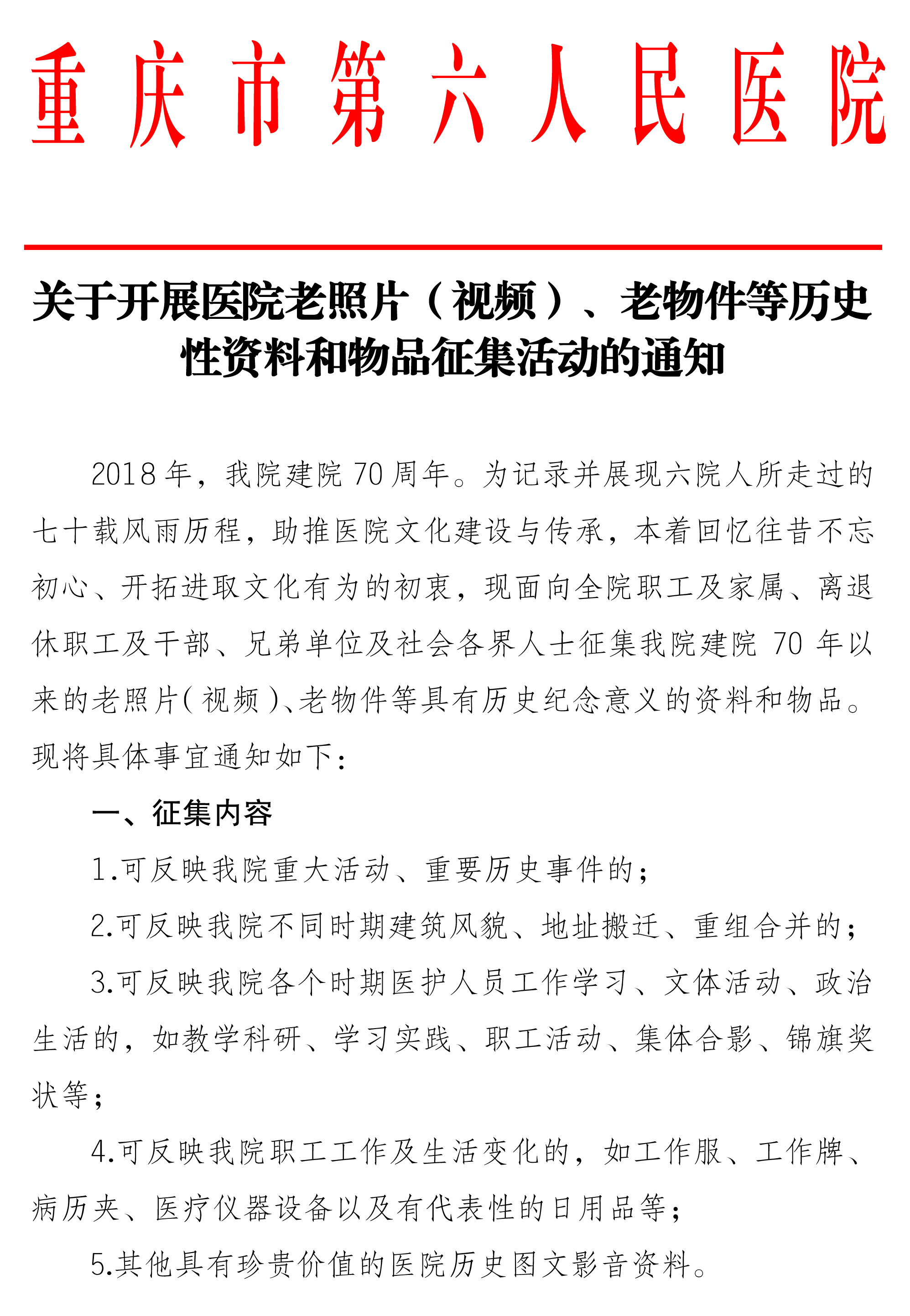 关于开展医院老照片(视频)、老物件等历史性资料和物品征集活动的通知
