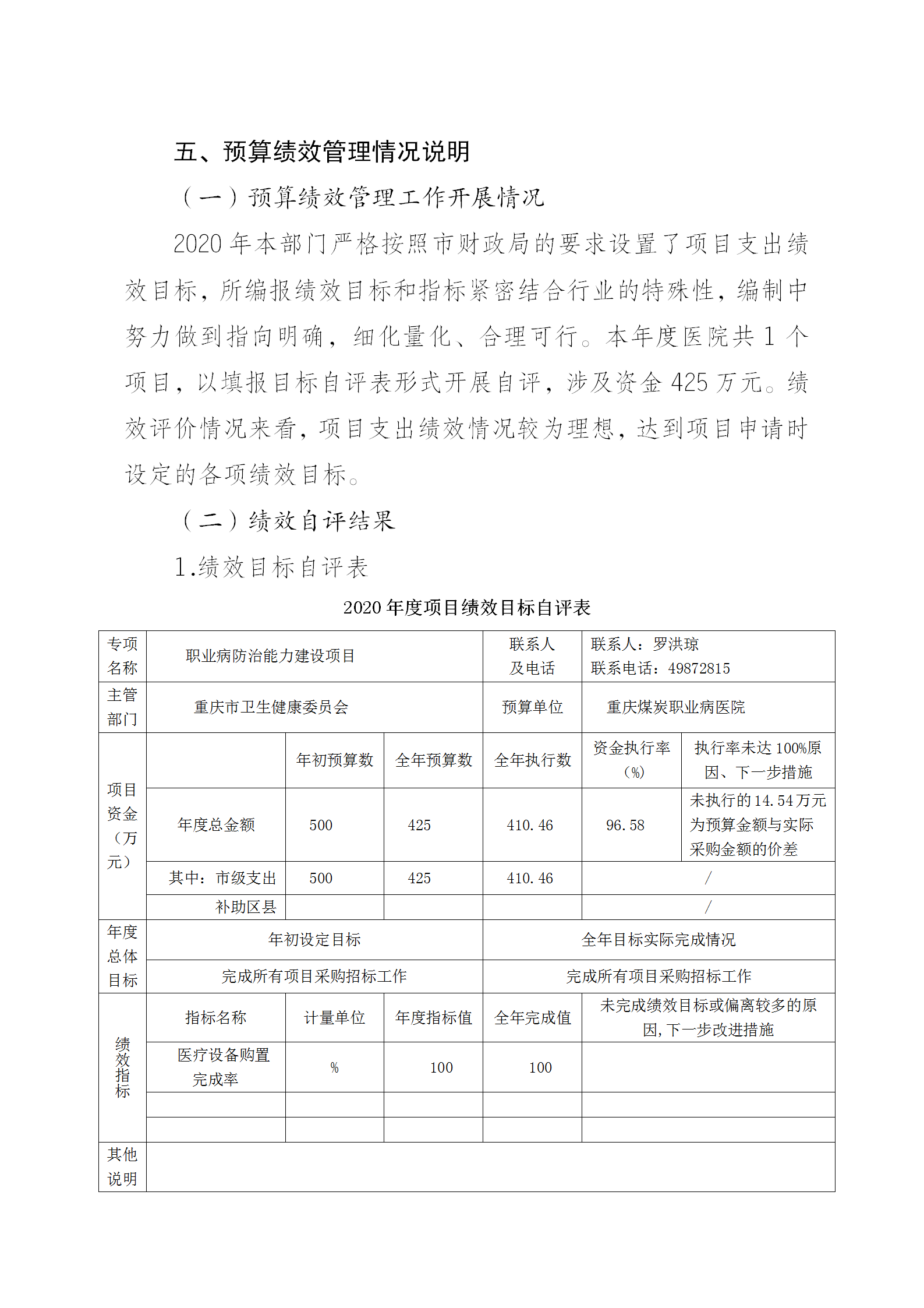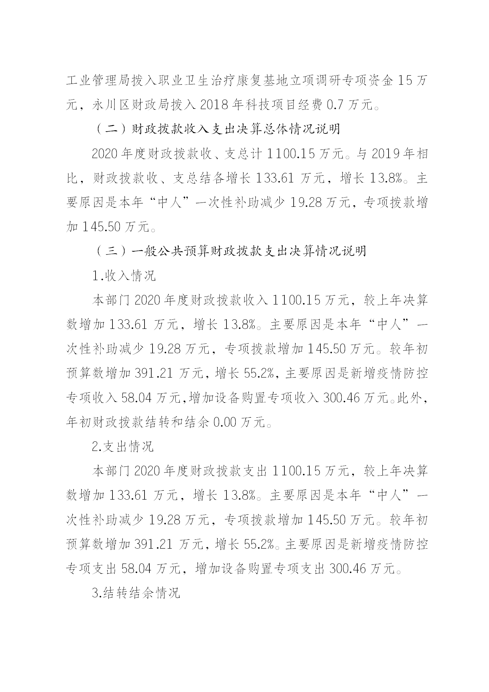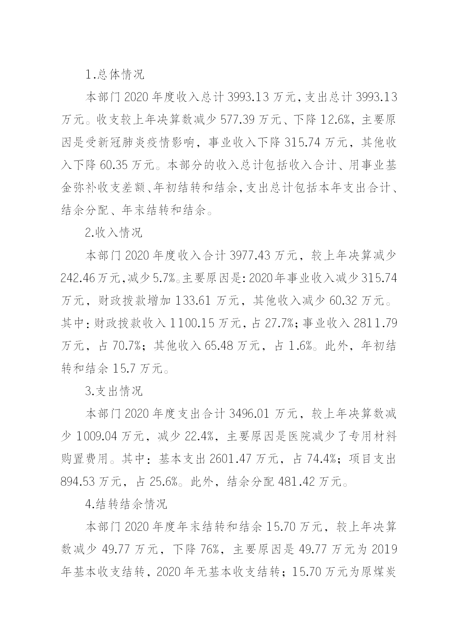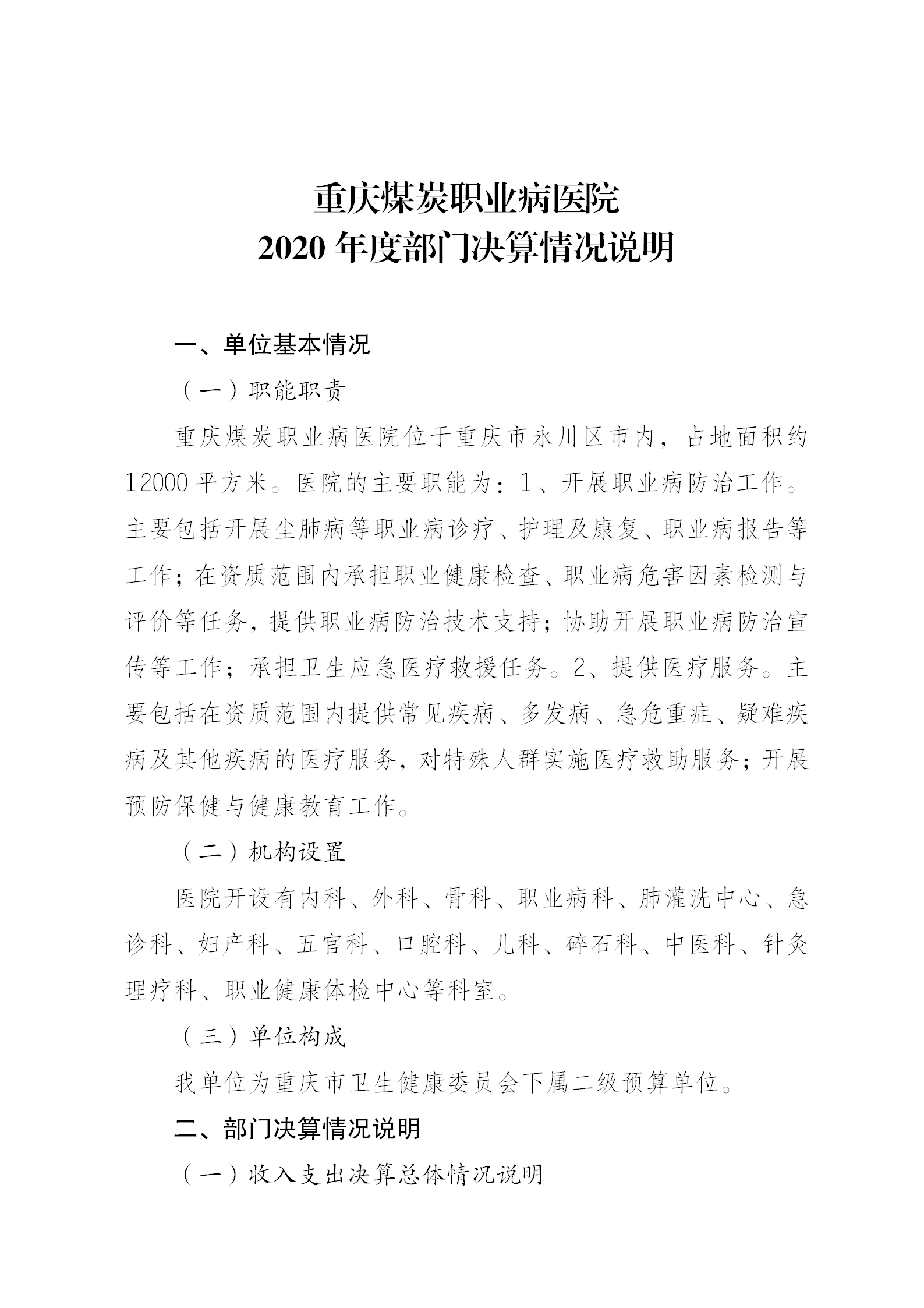 重庆煤炭职业病医院2020年度部门决算情况说明