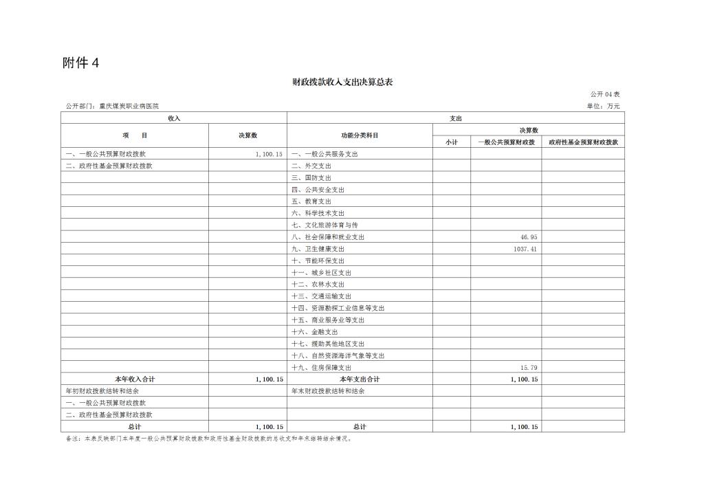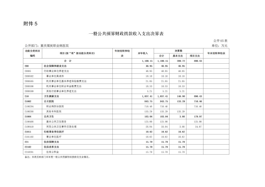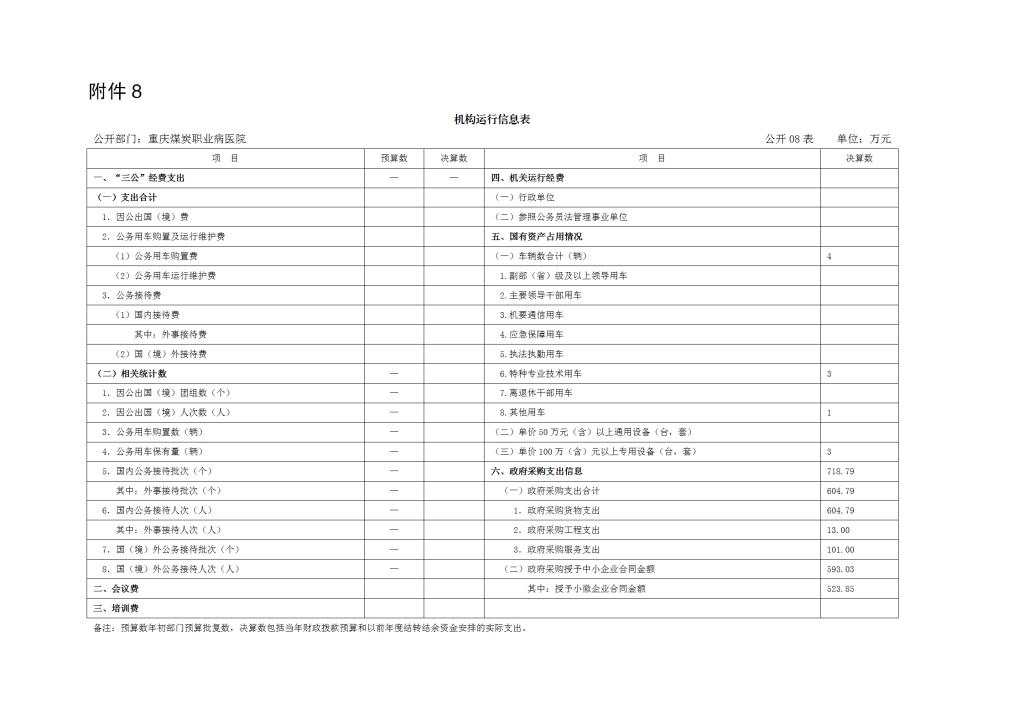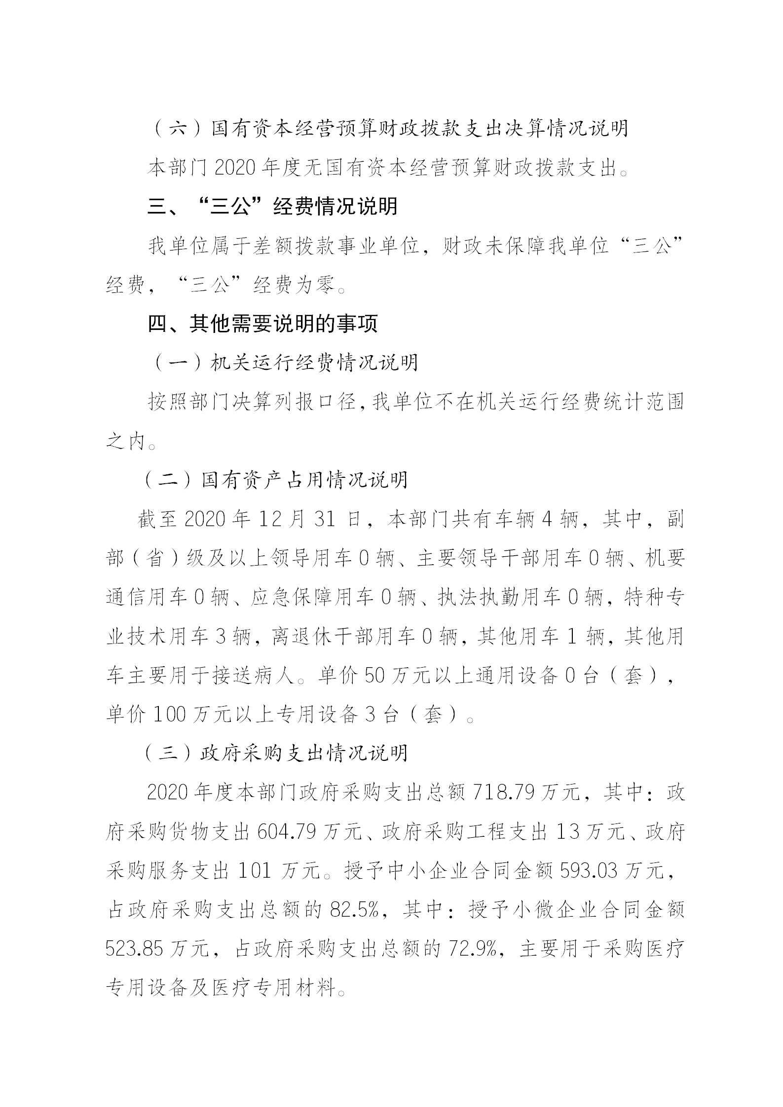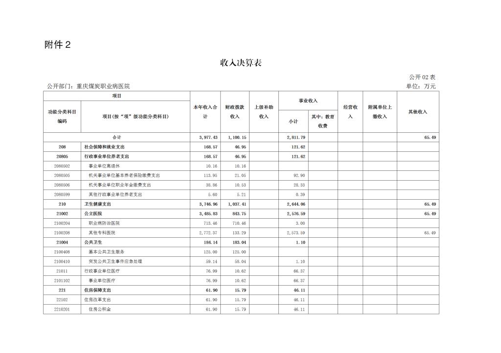 重庆煤炭职业病医院2020年度部门决算情况说明