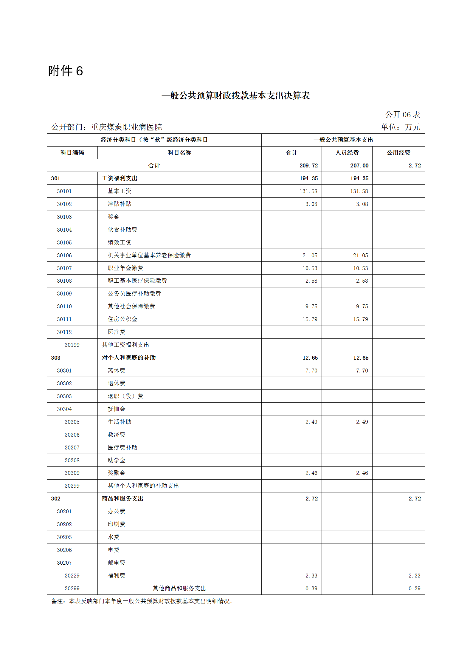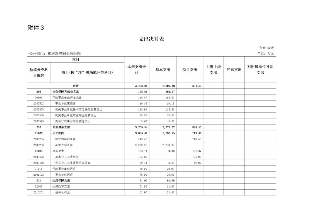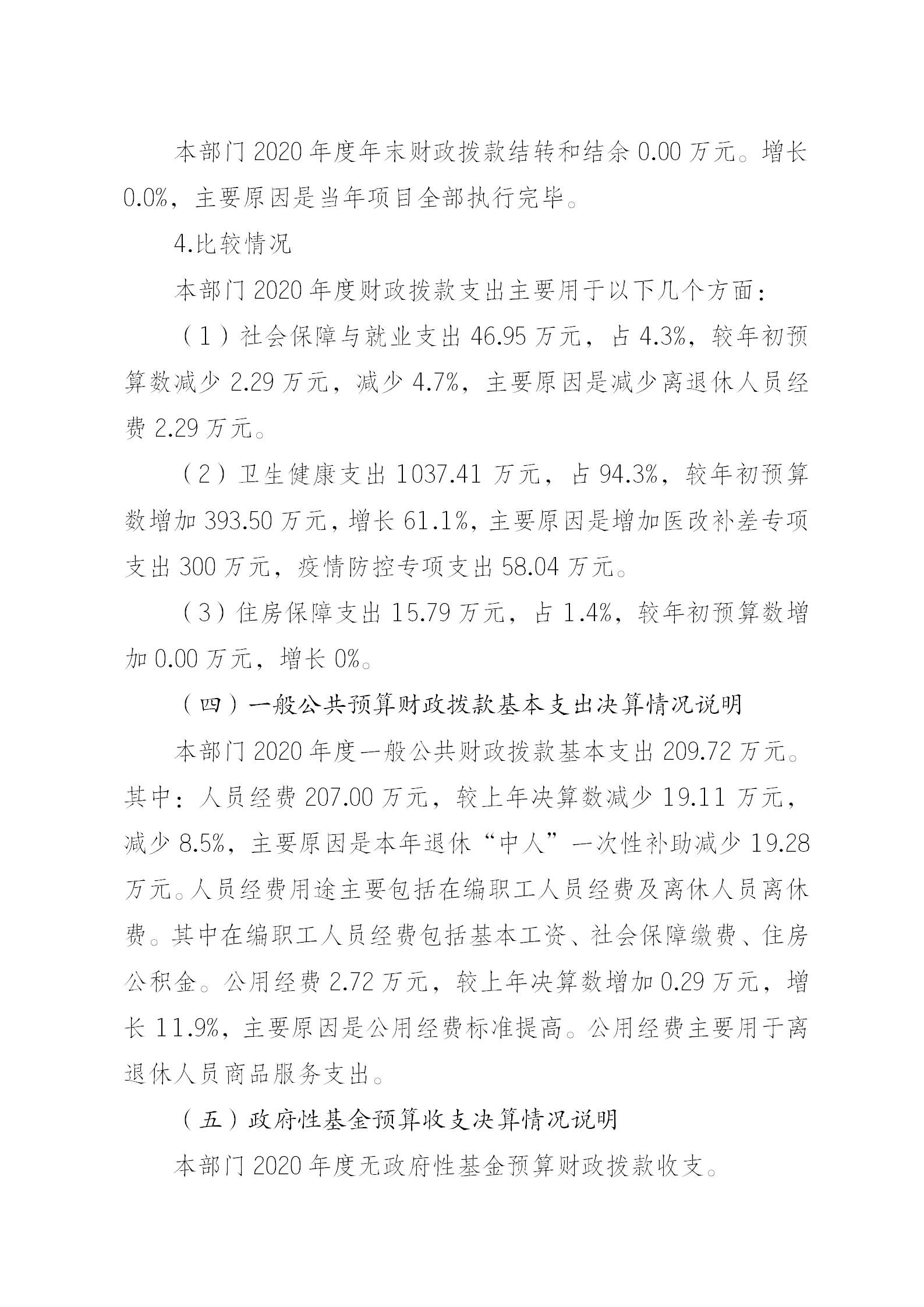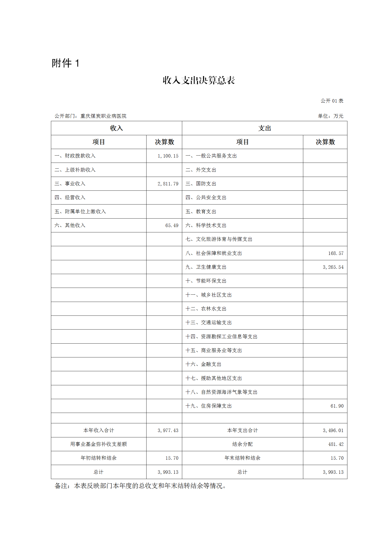 重庆煤炭职业病医院2020年度部门决算情况说明