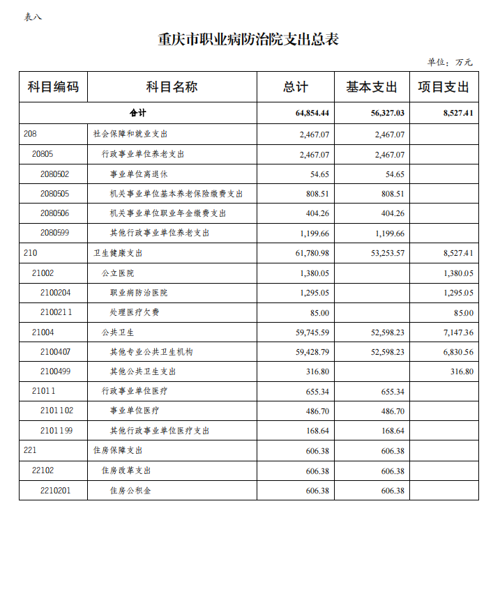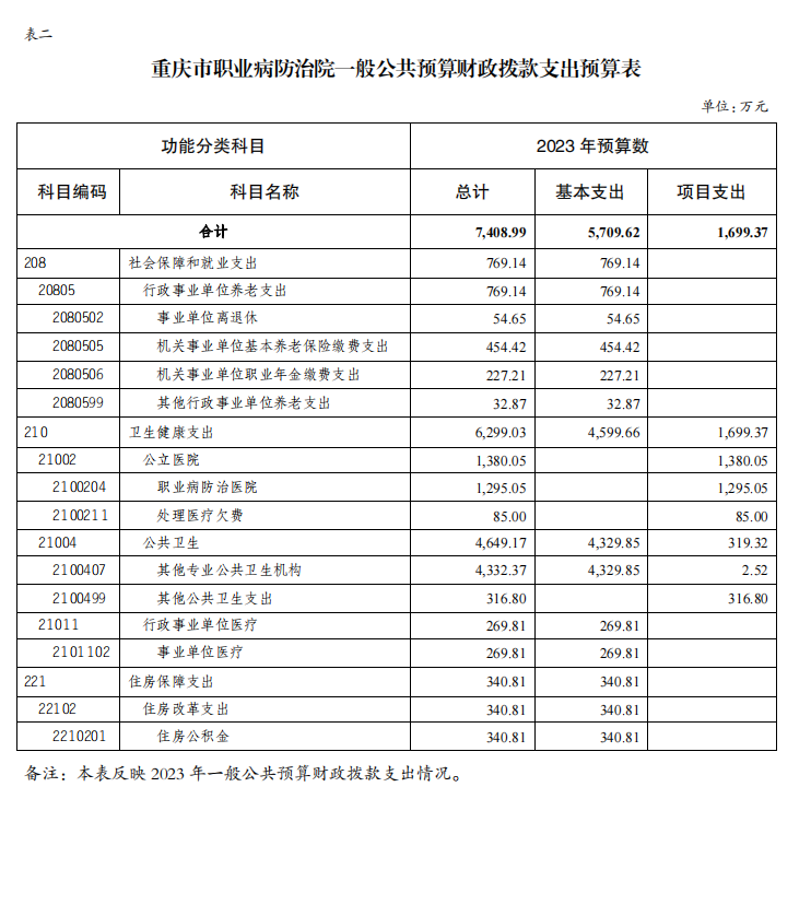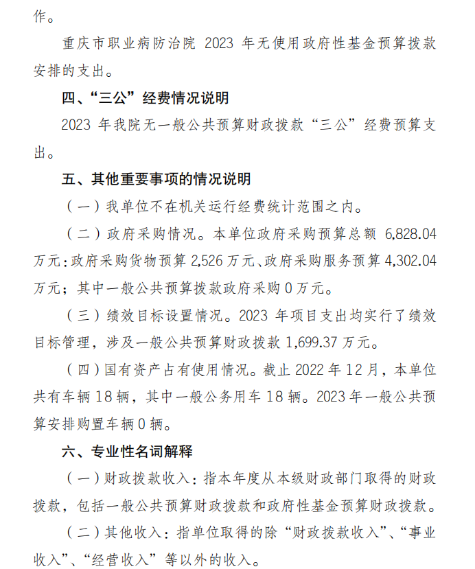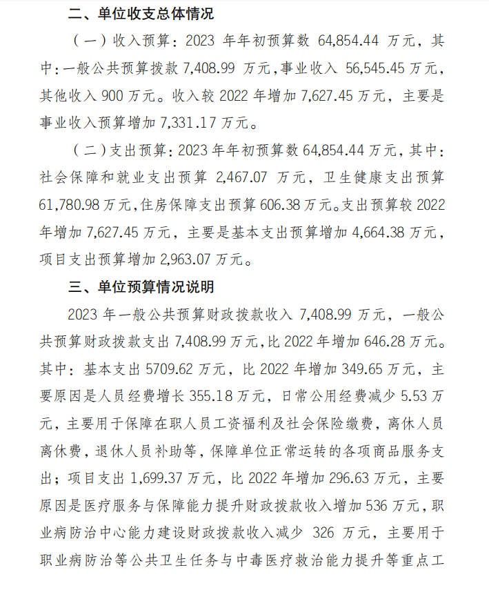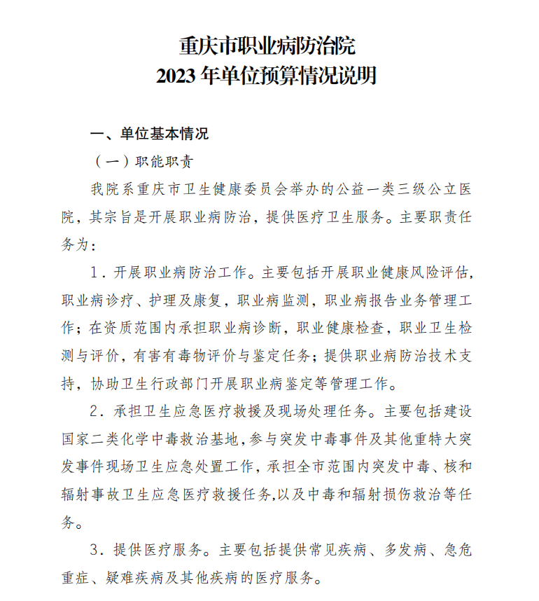 重庆市职业病防治院2023年单位预算情况说明