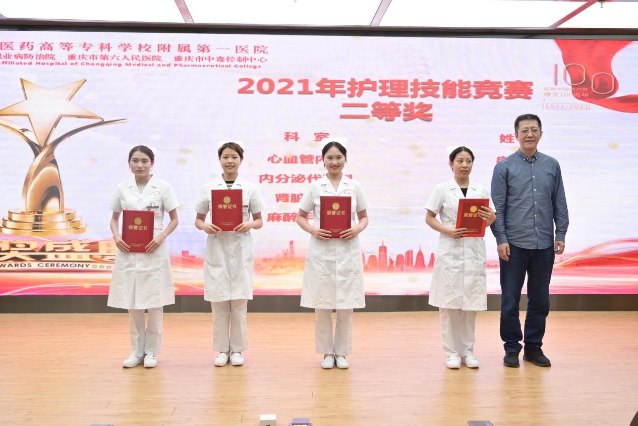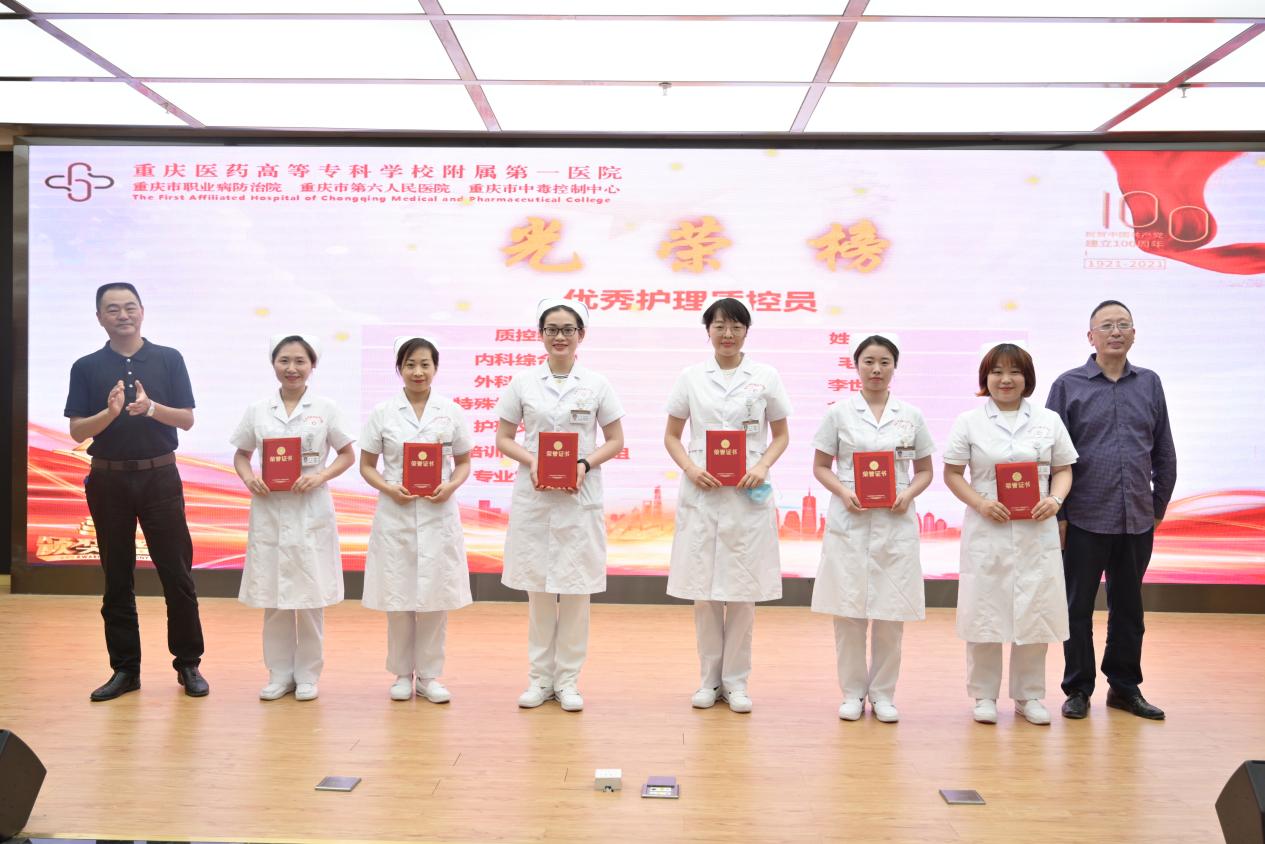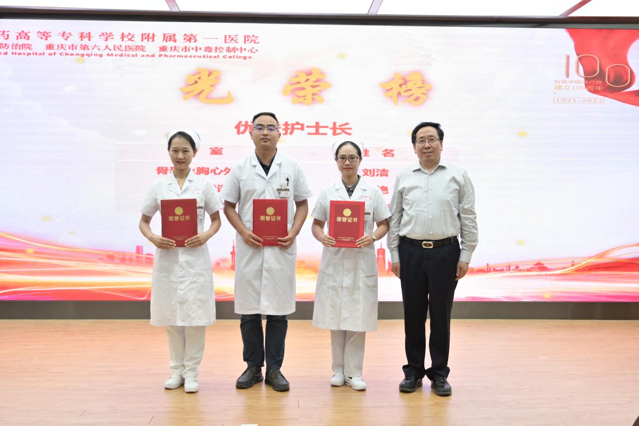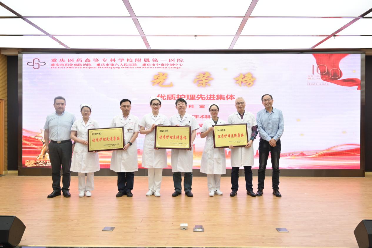 随后,副院长范炜宣读《重庆医药高等专科学校附属第一医院关于表彰2020年优质护理先进集体及个人和2021年护理技能竞赛获奖人员的通知》,其中,麻醉手术科、泌尿/神经外科、内分泌代谢科3个科室荣获“2020年优质护理先进集体”;骨科&胸心外科刘洁、内分泌代谢科耿艳、急危重症医学部周家林荣获“2020年优秀护士长”;刘治会、佘天梦等28名护理人员获得“2020年护理之星”,云凤、刘琴等33名护理人员获得“2020年夜莺之星”;毛柳、李世平等6名护理人员获得“2020年优秀护理质控员”;阳舒悦、简利等12名护理人员在“2021年护理技能竞赛”中获奖。院领导和部分职能部门中干代表为获奖人员颁奖。