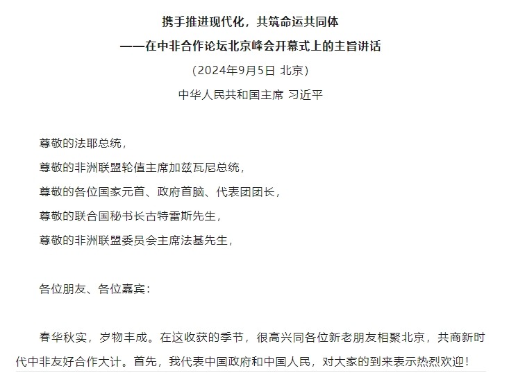 【理论学习】习近平在中非合作论坛北京峰会开幕式上的主旨讲话(全文)