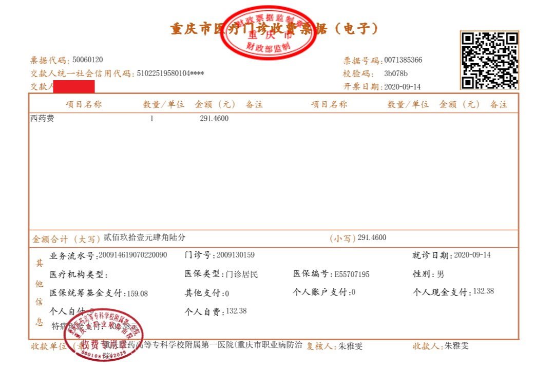 重庆医药高专附一院(市职防院)医疗收费电子票据正式上线