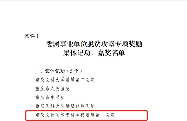 【喜讯】重庆医药高专附一院荣获全市事业单位脱贫攻坚专项奖励集体记功、个人记功等荣誉称号