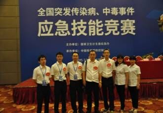 突发中毒事件应急处置全国技能竞赛于2015年7月20日-22日在北京九华山庄会议中心举行。全国30个省、市、自治区组队参加了此次竞赛(西藏未参赛)。我院由刘江风领队,叶绿素、朱冰峰、贺炜(A...