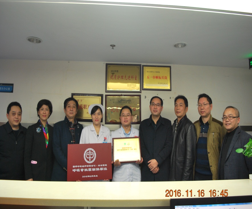 2016年11月16日下午,我院院长刘永生、党委书记张建余、副院长郭罗勇、张球、纪委书记朱小兵及科教科、医务科负责人等共计10余人参加呼吸内科 “慢性气道疾病管理示范单位”和“国家呼吸临床...