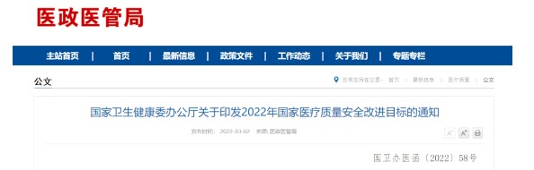 【转载】国家卫生健康委关于印发2022年国家医疗质量安全改进目标的通知(全文+解读)