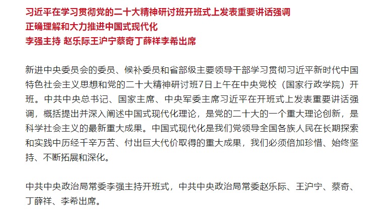 习近平在学习贯彻党的二十大精神研讨班开班式上发表重要讲话
