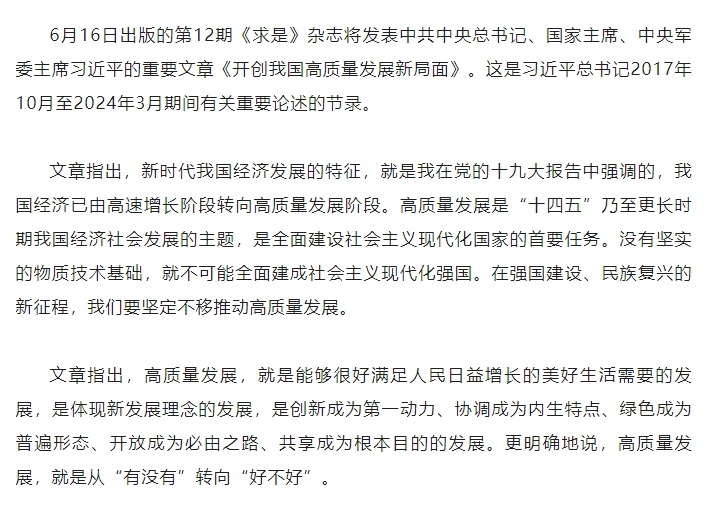 【理论学习】《求是》杂志发表习近平总书记重要文章《开创我国高质量发展新局面》