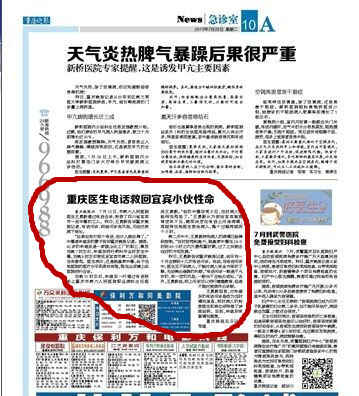 重庆医生电话救回宜宾小伙性命