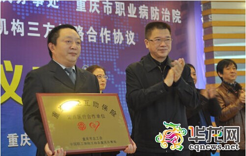 重庆晚报讯 昨日上午,重庆市总工会、中国职工保险互助会重庆办事处、重庆市职业病防治院,在重庆市职业病防治院举行签约授牌仪式,重庆地区首家职工互助保险定点医疗合作单位正式成立。 相...
