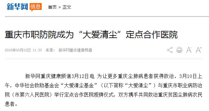 【媒体报道】重庆市职防院成为“大爱清尘”定点合作医院