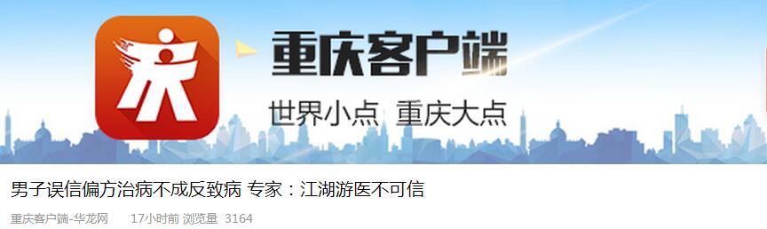 男子误信偏方治病不成反致病 专家:江湖游医不可信