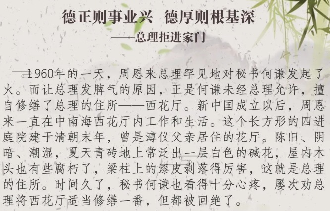 清廉之声|清廉故事汇:德正则事业兴 德厚则根基深——总理拒进家门