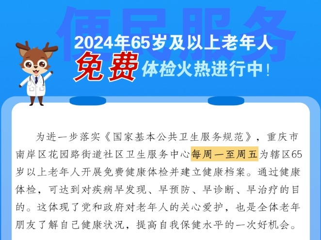 【便民服务】2024年65岁及以上老年人免费体检持续开展中~