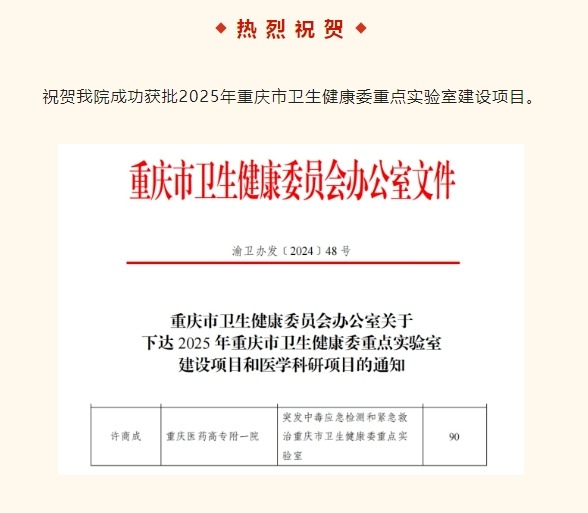【喜报】祝贺我院获批2025年重庆市卫生健康委重点实验室建设项目