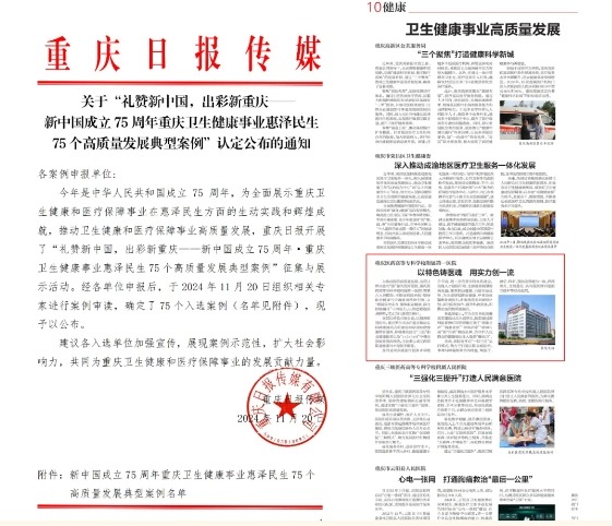 【喜报】祝贺我院《以特色铸医魂 用实力创一流——重庆医药高专附一院卫生健康事业高质量发展示范案例》...
