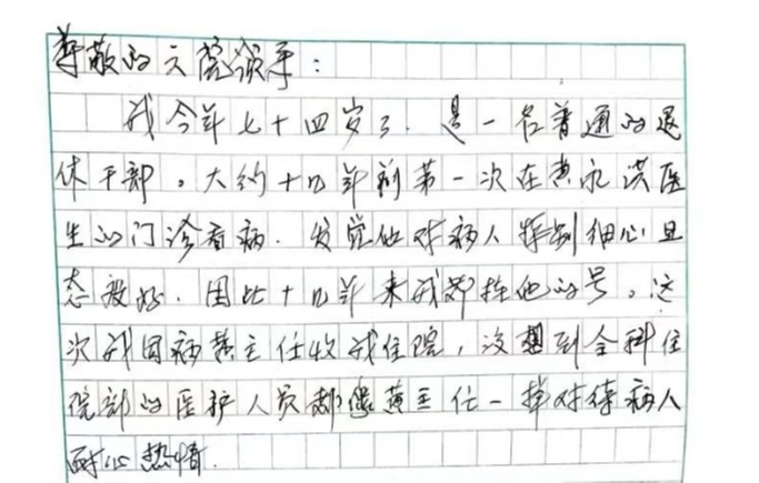 【医路有您·人文】第127期:一纸手书 传递医患温情——我院全科医学科收到患者亲笔感谢信