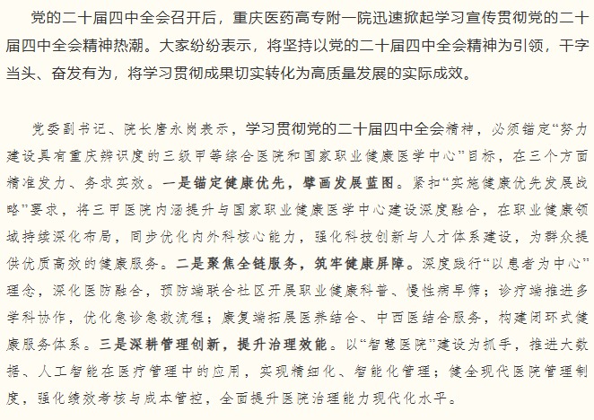 党的二十届四中全会精神在重庆医药高专附一院党员干部职工中引发热烈反响(三)