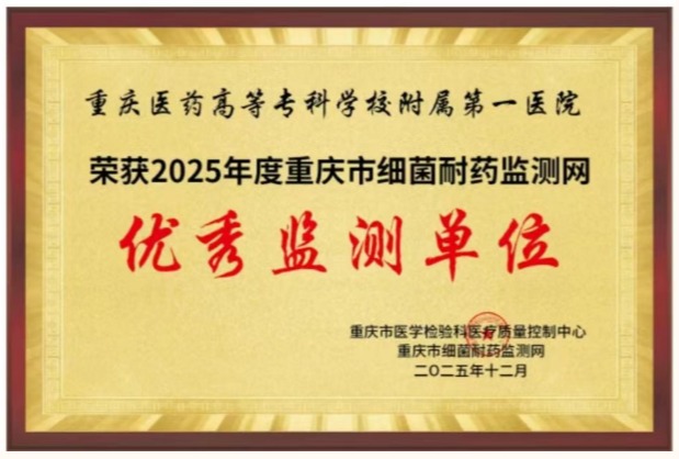 【喜报】祝贺我院获评2025年度重庆市细菌耐药监测网“优秀监测单位”